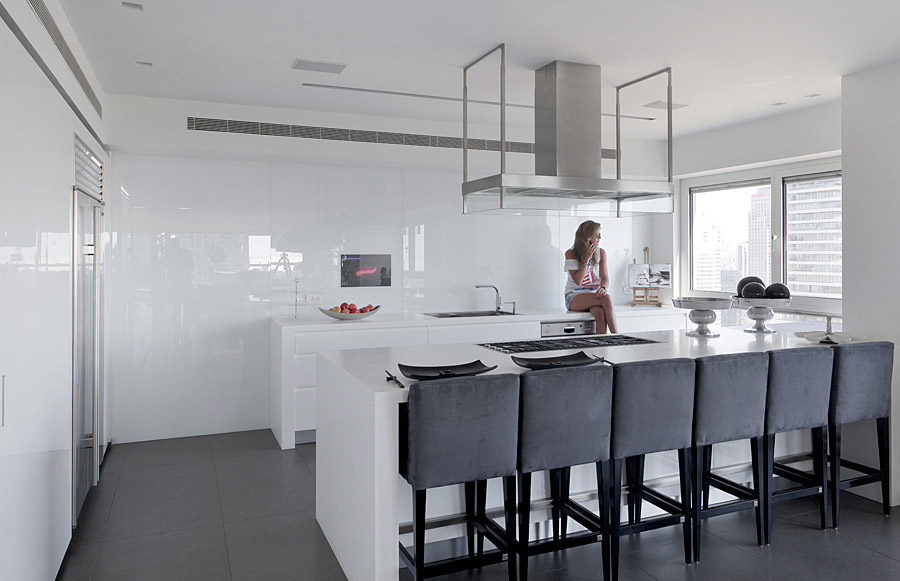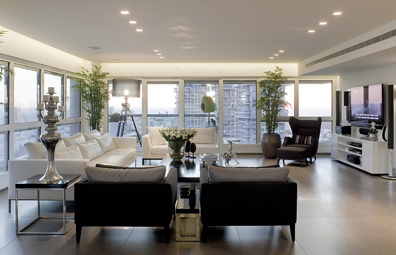 This spectacular apartment, heading north-west and east, is located at the exclusive W Tower, Park Tzameret, Tel Aviv. The W Tower is situated near the prestigious shopping square, Kikar HaMedina, and the tranquil HaYarkon Park. It is one of the tallest residential towers in the country rising to 46 floors. The tower includes 186 luxury residences. The interior design, public areas, main lobby and landscape surrounding the tower, are planned to the highest standards. The unit has awe-inspiring views of the city and the Mediterranean Sea. It features 6 bedrooms, 4 baths, state of the art chef’s kitchen, and contemporary designer details and finishes throughout.