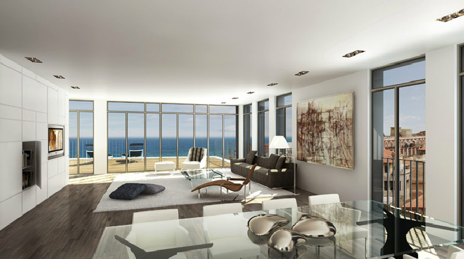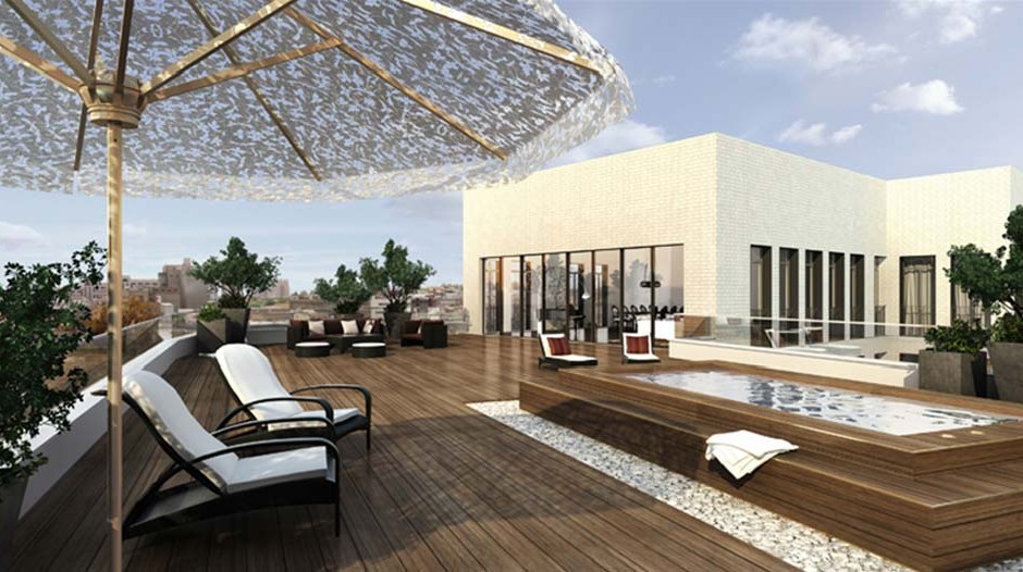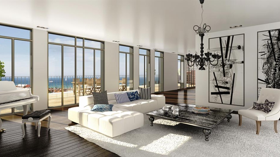 The Penthouse is located on the 5th & 6th floors and offers a 360° view to the sea, Jaffa and American Colony, with walking distance from the beach. It has a 3,260 Sq Ft. net living space, and 3.9 meters ceilings.